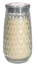 Vela aromática en frasco de vidrio texturizado. Aroma vibrante y floral con notas de peonía, rosa y frutas rojas. Duración: hasta 100 horas.
