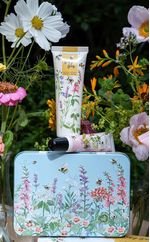 Dale a tus manos el cuidado que merecen con esta encantadora crema hidratante de manos Busy Bees de Heathcote & Ivory, presentada en una lata metálica decorativa con delicados motivos florales y de abejas.