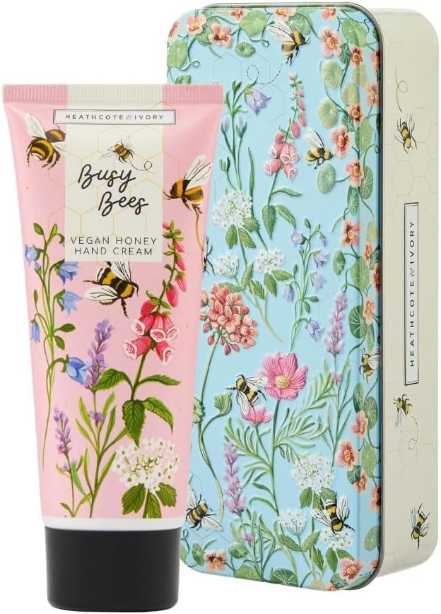 La Busy Bees Hand Cream in Tin (100 ml) es una crema vegana con fragancia de azahar y miel vegana, formulada con manteca de karité, manteca de cacao, vitamina E y extractos antioxidantes de hoja de manuka y flor de bálsamo de abeja