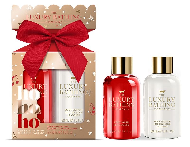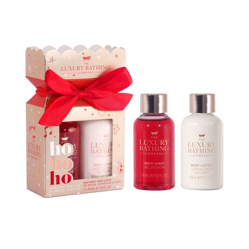 Un set festivo con gel de baño y loción corporal en una fragancia cálida y deliciosa.