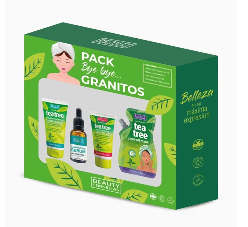 El PACK Bye Bye Granitos Beauty Formulas está diseñado especialmente para quienes buscan un cuidado completo contra los granitos e imperfecciones. Una rutina fácil, práctica y efectiva que ayuda a purificar, controlar el exceso de grasa y reducir los brotes.