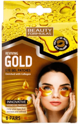 Los Gold Reviving Eye Gel Patches de Beauty Formulas son parches de hidrogel diseñados para revitalizar la mirada al instante. Su fórmula con extractos iluminadores y el toque dorado de lujo ayudan a hidratar, refrescar y reducir signos de cansancio en la zona del contorno de ojos.