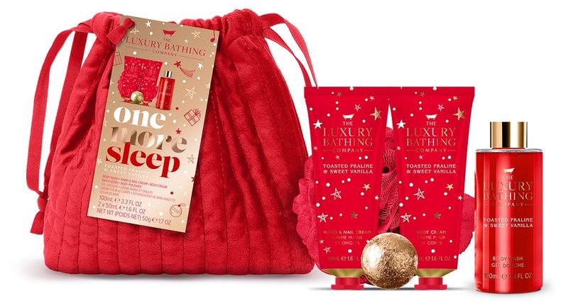 Set de lujo con crema de manos, crema corporal, gel de baño, efervescente y neceser de terciopelo.
