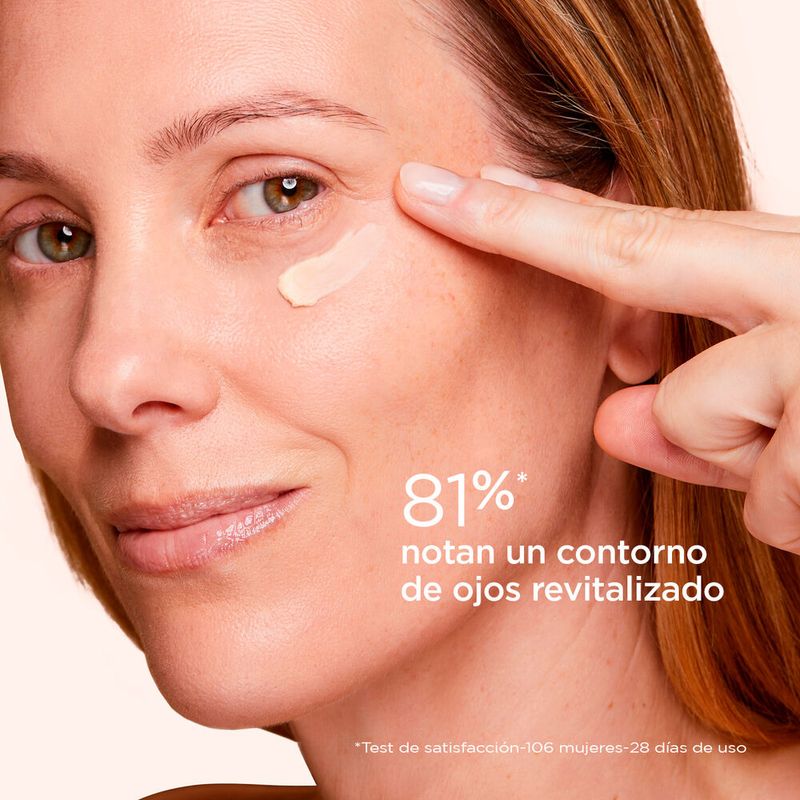Aplicar una pequeña cantidad en el contorno de los ojos, desde el extremo interior hacia el extremo exterior.