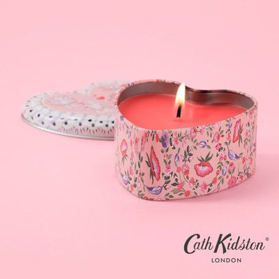 Vela aromatica en forma de corazon en caja de Lata